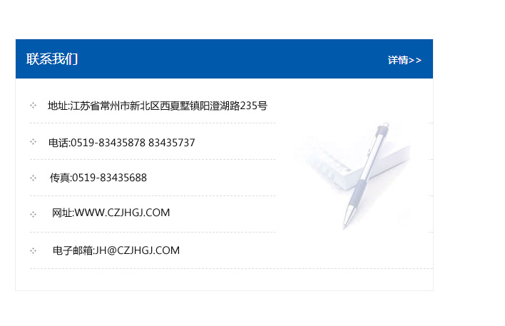地址:常州市新北區友邦商務大廈1幢16、17層  電話:0519-85101652  傳真:0519-85112595  郵編:213022  網址:www_cz-jiayue_cn.hairmer.com  郵箱:xiajifengaa@163.com